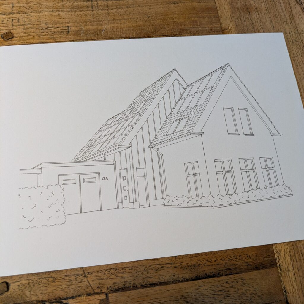 Elke tekening is uniek en persoonlijk, gemaakt met oog voor detail en het karakter van het gebouw.