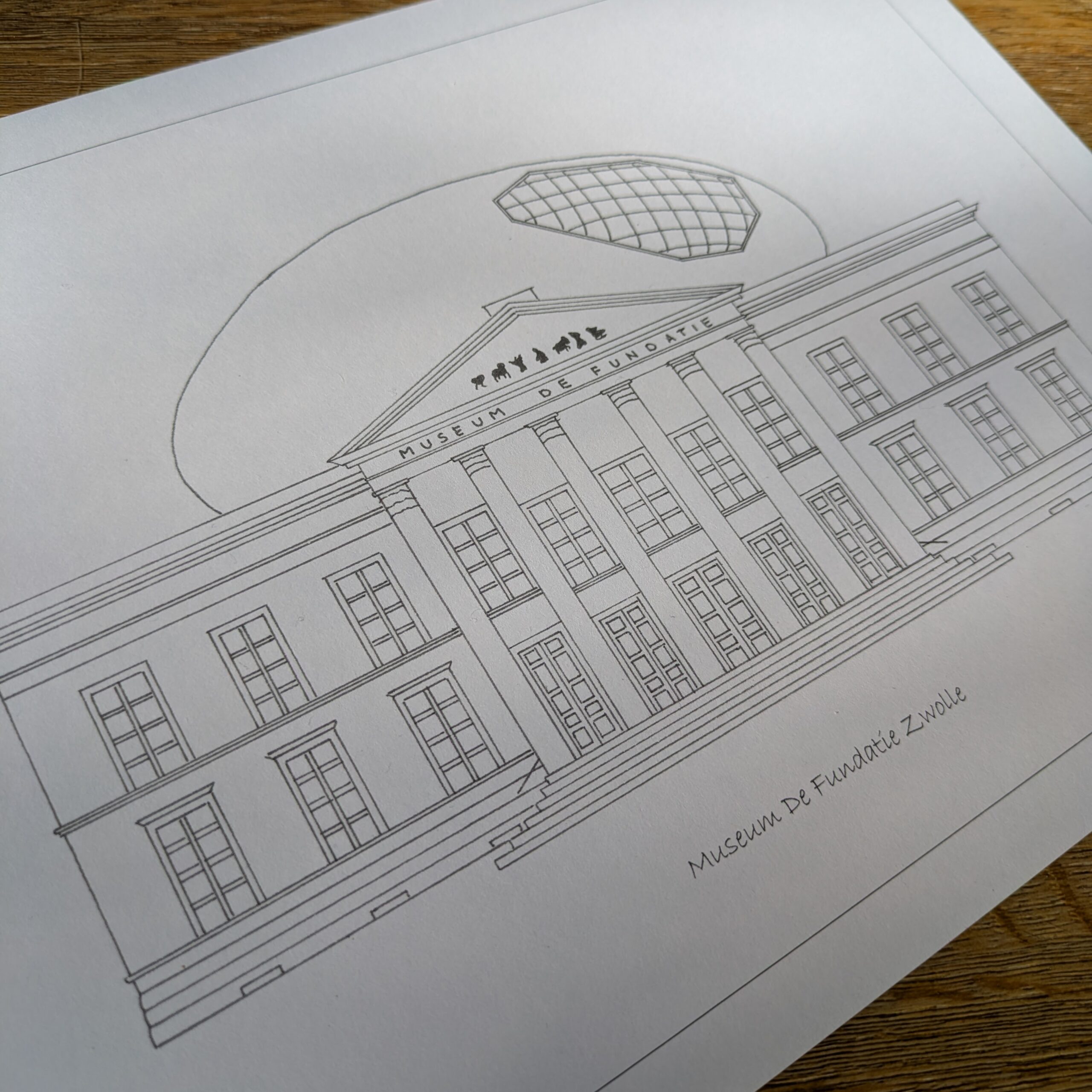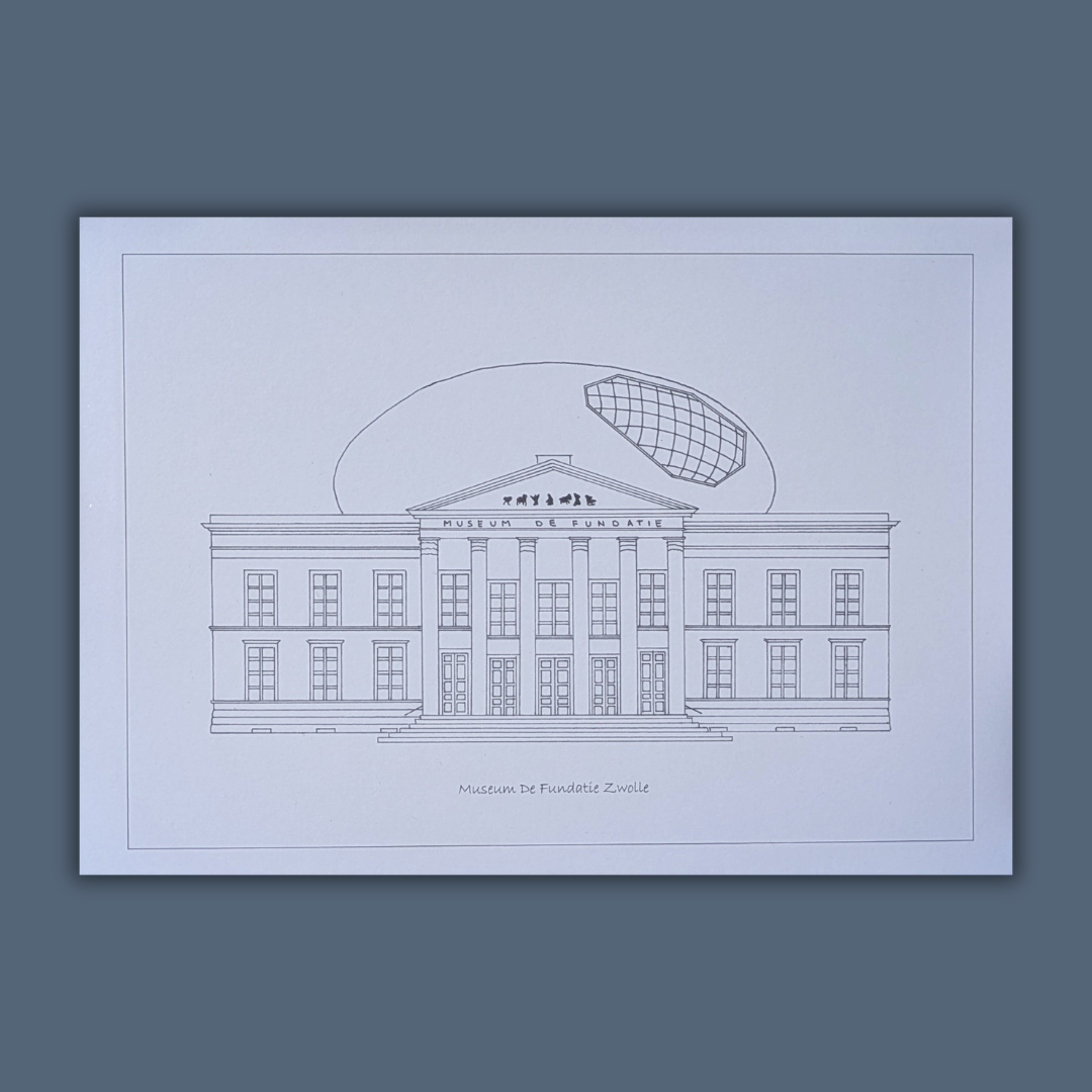 Gedetailleerde tekening van museum de Fundatie in Zwolle.